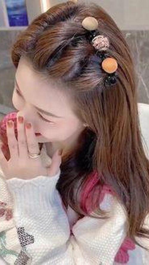 2. 对称美:在头发两侧插入相同形状、颜色的大夹子,可以让你的造型更加对称。
